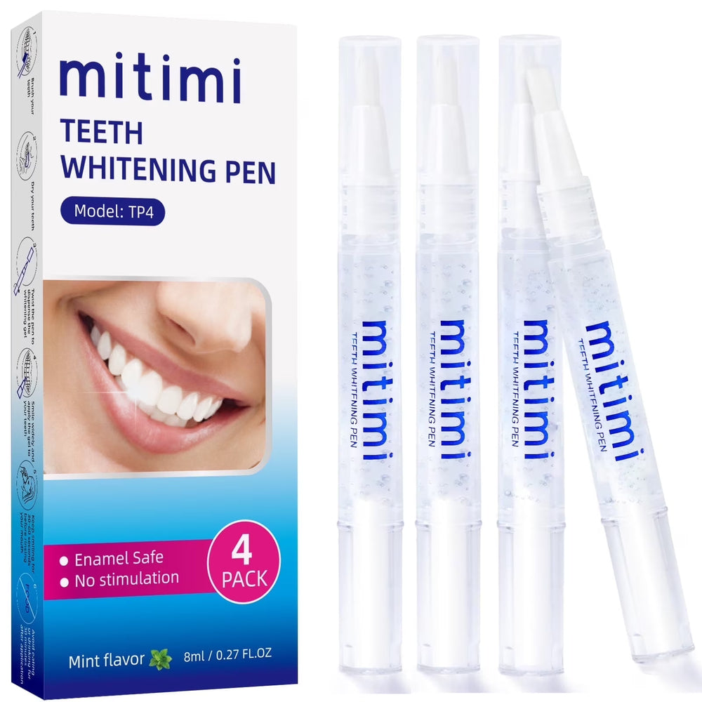 Mitimi 4 Piece Teeth Whitening Gel Pens, Painless, No Sensitivity, Travel-Friendly, Mint Flavor