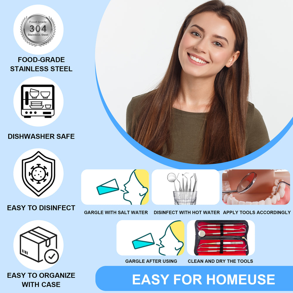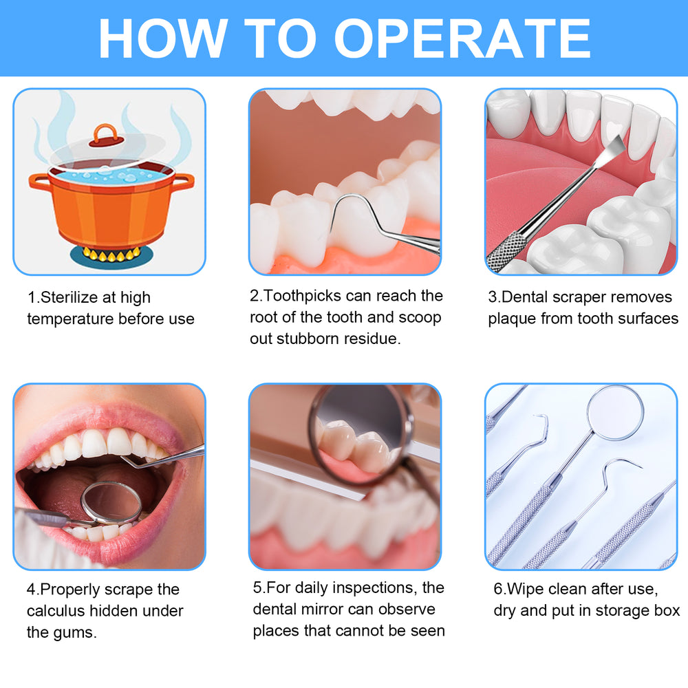 Mitimi 6 Pcs Stainless-Steel Toothpicks Reusable Floss Tooth Picks Scraper, Dental Tools for Adult